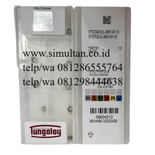 Kami menjual Insert Tungaloy EPGT040102L-W08 GH110 Berbagai Ukuran terjamin dan berkualitas. Tersedia ukuran dan spec yang lain. Jika anda membutuhkan segera hubungi kami pada nomor yang tertera