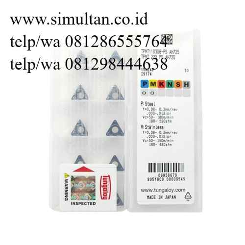 Kami menjual Insert Tungaloy TPMT110308-PS AH725 Berbagai Ukuran terjamin dan berkualitas. Tersedia ukuran dan spec yang lain. Jika anda membutuhkan segera hubungi kami pada nomor yang tertera